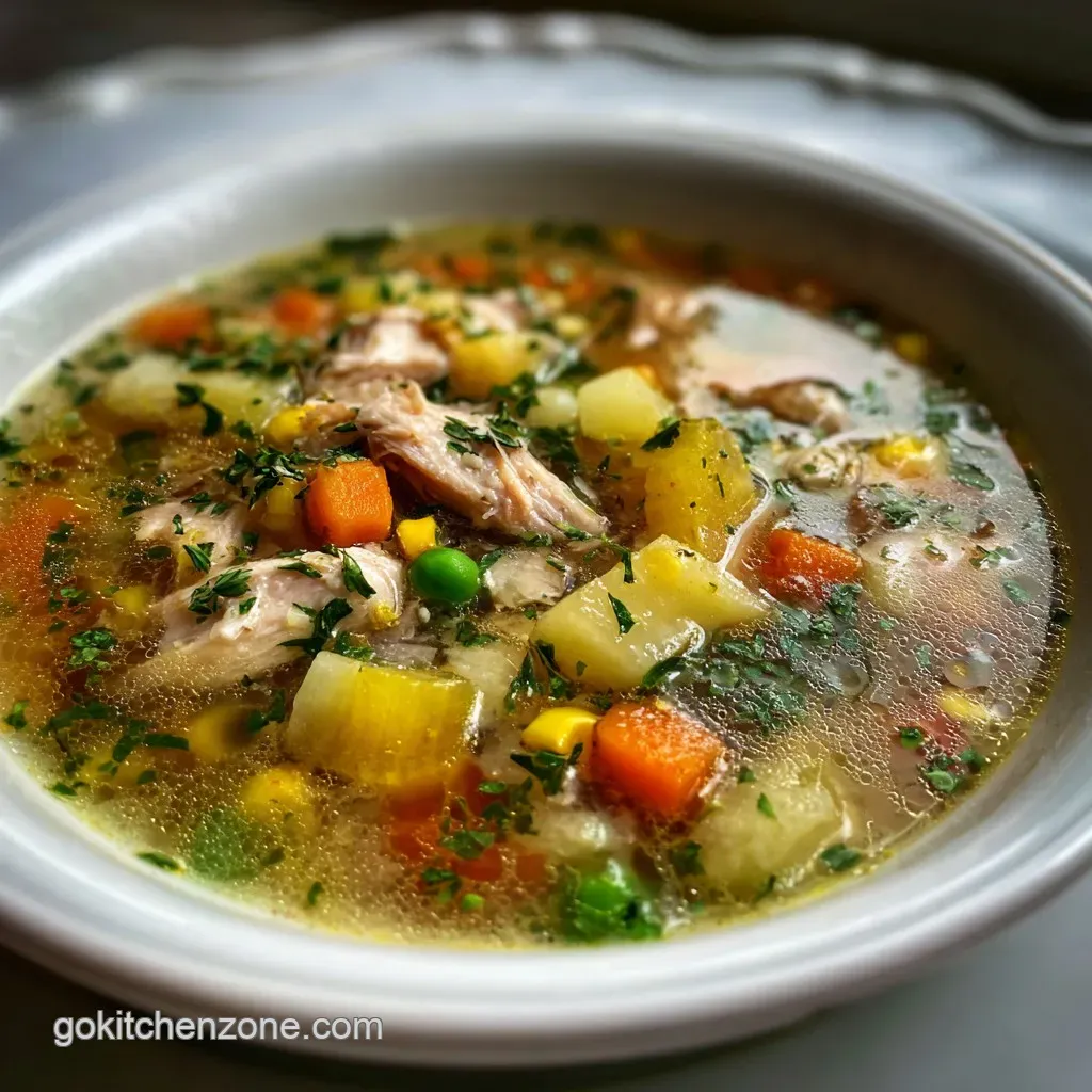 - Flavor/Texture Hook: Silky broth with velvety potato chunks and tender chicken