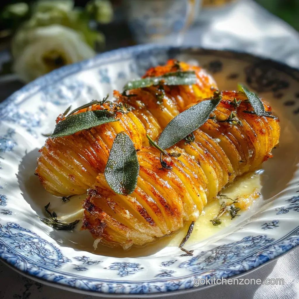 Presentation is everything when it comes to christmas dinner sides. Since the Hasselback slices are already so visual, you don't need much. A final sprinkle of fresh, thinly sliced sage and a crack of black pepper is usually enough to make it look like a magazine cover.