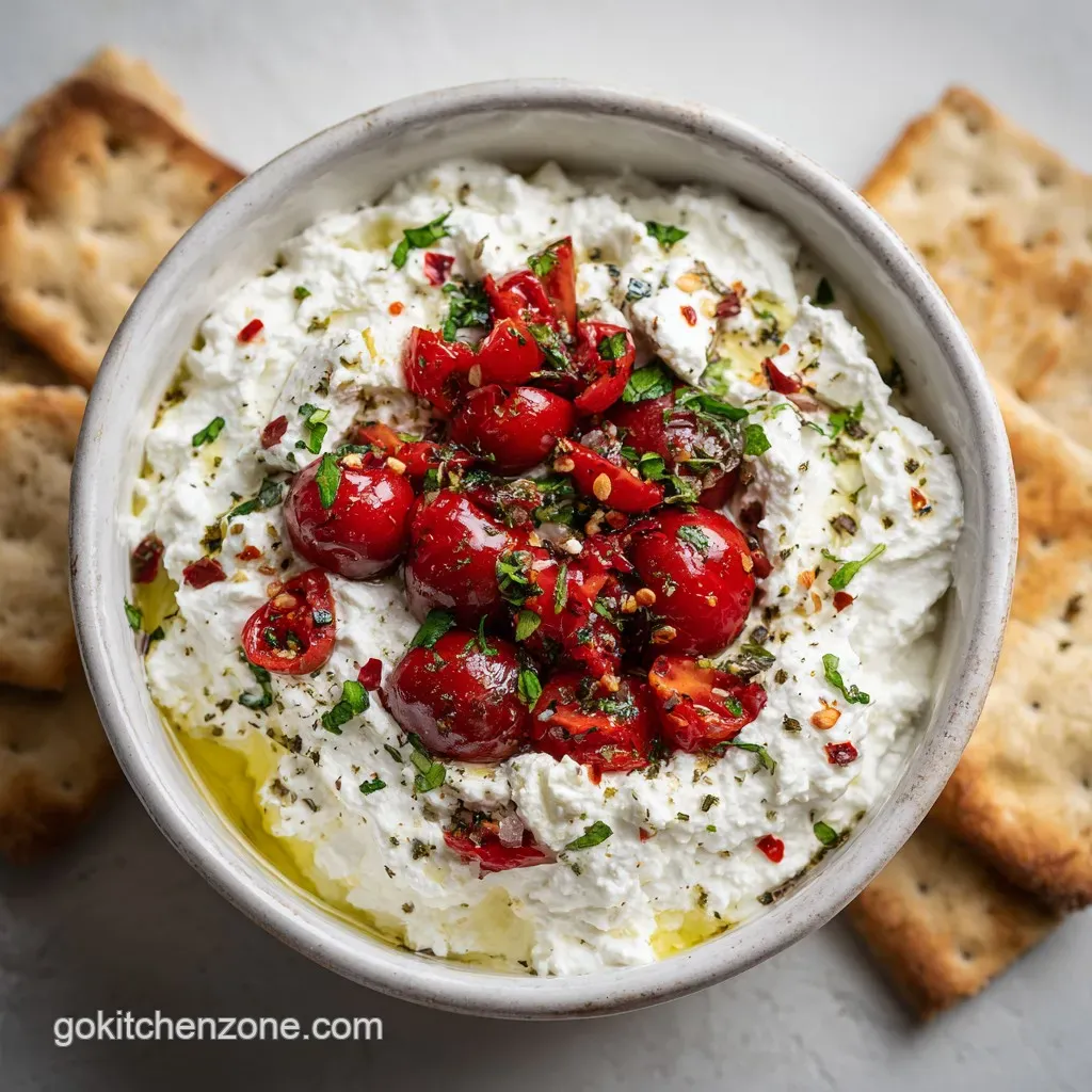 For a cozy twist, try a Baked Feta Dip Recipe version. Transfer the finished whipped dip to an oven safe dish, top with cherry tomatoes, and bake at 400°F for 15 minutes. The edges will get slightly golden, and the center becomes incredibly dip able.