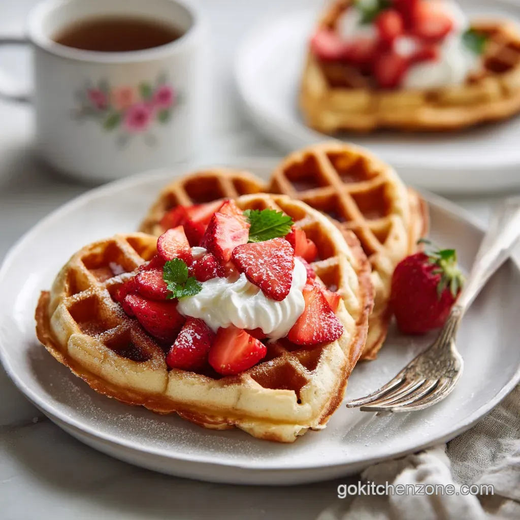 Heart shaped waffles are the perfect centerpiece. Supplement them with easy, shareable items like a fresh fruit platter, or a savory counterpoint like a simple quiche or baked eggs.