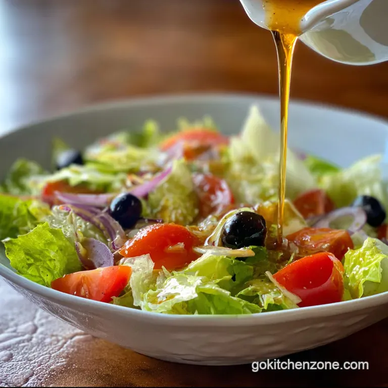 The classic restaurant experience involves more than just the dressing. To really nail the vibe, chill your salad bowls in the freezer for ten minutes before serving. Use a mix of iceberg and romaine lettuce, add some shaved carrots, red cabbage, a few slices of red onion, and the most important part exactly two pepperoncinis and one large black olive per person.